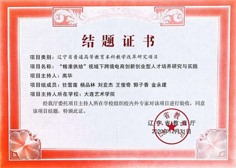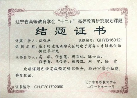 早在2016年开始电子商务专业就在专业带头人的带领下开始基于跨境电商综试区的人才培养,相继有教科研项目15项进行深度拓展研究,逐步形成校企协同育人理念下跨境电商人才培养,实现了“学业、职业、行业、就业、创业”的融会贯通。2020年12月申报“‘校企共育 梯度孵化’创新创业型跨境电商人才培养研究与实践”获批辽宁省教学成果三等奖。