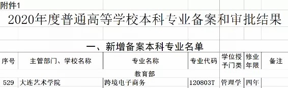 大连艺术学院电子商务专业2004年开设,是淘宝大学实训基地,阿里巴巴跨境电商人才培育合作专业,校级创新创业教育改革试点专业,2014年辽宁省本科专业综合评价中位列新建本科院校同专业首位,是教育部跨境电商B2C数据运营1+X证书试点院校,是辽宁省人力资源和社会保障厅电子商务师(网商和跨境电子商务师)职业技能等级认定单位。