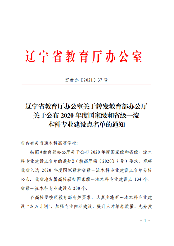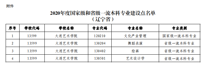大连艺术学院-2020年度国家级和省级一流本科专业建设点名单